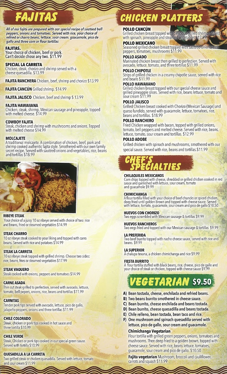 La Carreta Mexican Restaurant Seward Menu
